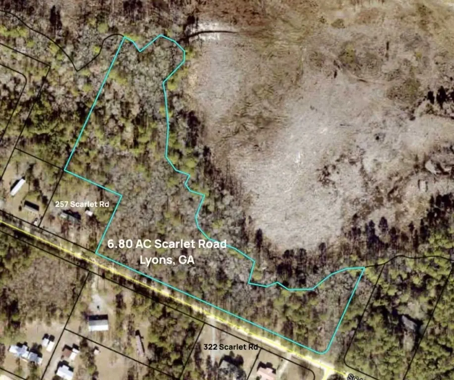 Located on Scarlet Road, Lyons, GA 30436. Versatile 6.80-acre parcel that offers several options for ways to use the land. Zoned to allow for either traditional houses or mobile homes, it offers incredible flexibility. Whether you're looking to build your dream home with plenty of space to spare, have a farm. One of the most exciting features of this acreage is its potential for multiple residences on the 6.80 acres. The property is .3 of mile from paved road, US 1. There is a Creek running through the back portion of the property. The land appears to have some small elevation changes, with some valleys and some high ground. All appears to be very good land. Would be great for residence with farm animals.