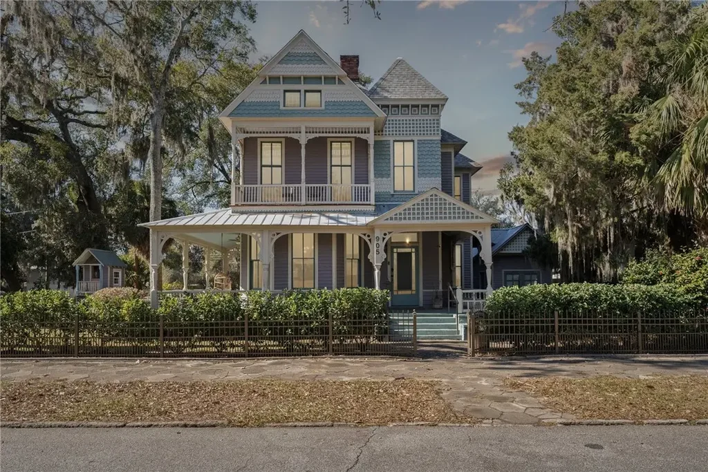 Circa 1890. The Wright House, built for James B. Wright, is one of the best examples of Victorian Queen Anne architecture in historic Brunswick, which is centrally located between Savannah, GA and Jacksonville, FL. A grand classic wrap-around front porch welcomes you. Elegant light filled interior w/soaring ceilings, preserved period details, 5 original fireplace mantles w/vintage tile & iron insets & gleaming hard wood floors. Main floor features large living & dining/family rooms, immaculate eat-in kitchen w/stainless steel appliances and a gas range for the true chef in you, downstairs bedroom, full bath & large laundry room with tons of storage. Front and rear stairways lead you upstairs to discover 3 to 4 additional bedrooms, 1 full bath & a trunk room ideal for home office/walk in closet or create another full bath. Outside, find the most adorable playhouse, storage shed and oversized golf cart garage. Slip into relaxation on the very private deck & cool down in the cold plunge tub or outdoor shower installed in the past year. Off street parking for 4 cars, a Tesla charger, new HVAC and several new appliances will add to the convenience of this move in ready house whether you want to call this magnificent property your next home or your next investment property. It has been operating as a very successful 5 star rated SHORT TERM vacation rental since March 2024. Walking distance to the shops and restaurants of historic downtown and only a 15-20 minutes car ride to Jekyll and St Simons Island where you will find one of the nicest beaches on The Golden Isles make this the most convenient location.