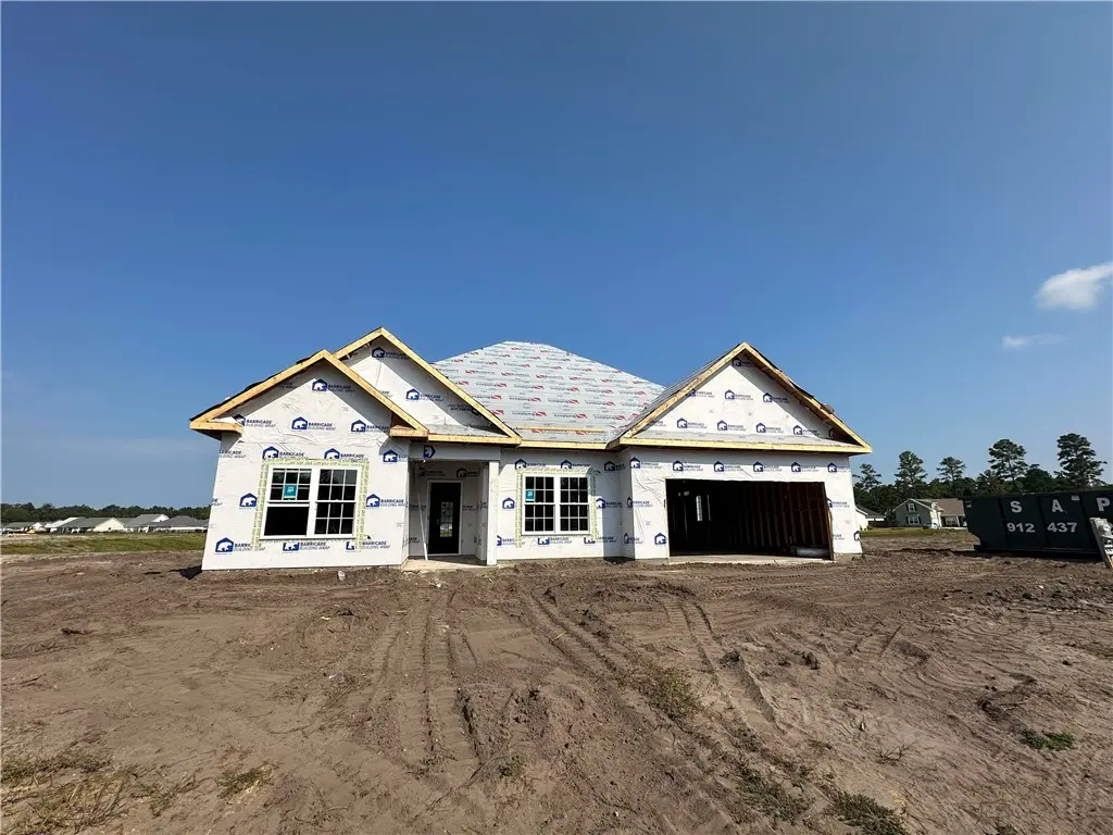 The Brooklet Plan is a single story home with 3 bedrooms and 2 baths. It's 1,821 heated sq ft. This open floor plan has granite countertops, LVP flooring in main living areas, primary bedroom, and laundry, carpet in the secondary bedrooms, and tile in the baths, wood shelving in closets and laundry room, and a framed glass shower door in primary bathroom. All stainless steel appliances (no refrigerator). This is a newer development within Carriage Gate Plantation. It's a gated community with great amenities, including a large pool, lounge area, fire pit, and a grilling area.