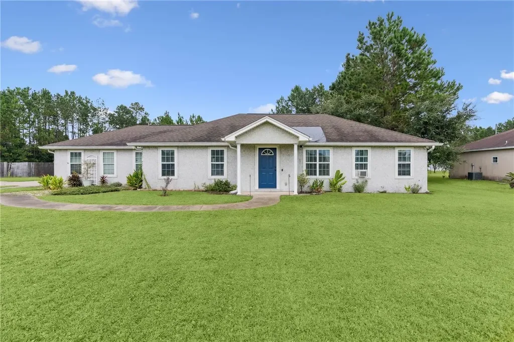 This 3-bedroom, 2-bath home offers a desirable split floor plan with an open concept design. The vaulted ceiling living room with cozy fireplace, built-in bookshelves, and durable vinyl plank flooring flows seamlessly into the dining area and kitchen. The kitchen features charming butcher block counters, tile backsplash, breakfast bar, pantry storage, and direct access to the laundry room and 2-car garage. The owner’s suite provides comfort with a walk-in closet and tray ceiling, en-suite bath including a double vanity, linen closet, and tiled walk-in shower. Two additional guest bedrooms are ready for your finishing touches, currently with exposed concrete floors awaiting new flooring. Enjoy outdoor living on the screened back porch overlooking a fenced backyard, perfect for pets or gatherings. Additional highlights include hvac replaced in 2020, termite bond, fenced yard, septic pumped 3/25/2025, and no flood insurance requirement. Please note this property needs a new roof and flooring in the guest bedrooms. While the driveway is shared, each home enjoys its own dedicated parking and defined property lines. The setting provides a balance of neighborhood connection and individual ownership, making this an excellent opportunity for buyers seeking value and character in a well-established location.