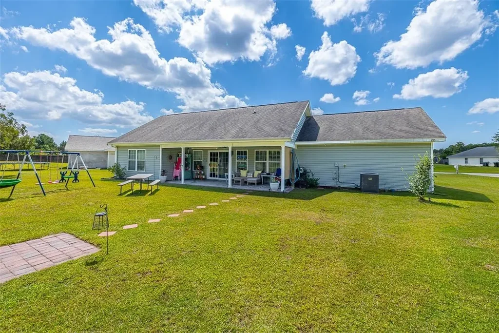 DO NOT WAIT, PRICED TO SELL! Set on a ½-acre homesite in the highly sought after Maggie’s Ridge Community, this welcoming 3 bed, 2 bath single level home blends easy living with low maintenance. Built in 2007, this move-in-ready home delivers the space, privacy, and value that are hard to find at this price point. Lot placement in the X flood zone (no lender-required flood insurance) and modest neighborhood HOA dues at $150 a year. Inside, a bright living area flows into an eat-in kitchen with a breakfast nook, pantry, and included appliances. The private primary bedroom sits apart from the secondary bedrooms and has its own full bath, while a dedicated laundry room adds everyday convenience. Out back, a covered patio overlooks the expansive lawn and an above-ground pool...great for weekend cookouts and play. An attached two-car garage, durable vinyl exterior on a slab foundation, and central electric HVAC keep maintenance simple. This home is on a septic tank and community well, ensuring low maintenance. Located in a great area with easy access to I-95, grocery stores, and restaurants, this property offers both comfort and convenience. Don't miss out on the opportunity to make this lovely home yours!