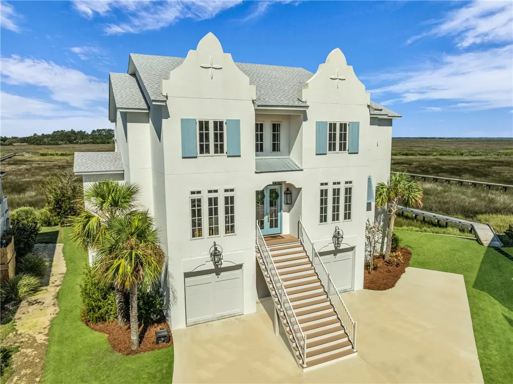 Welcome to 17 Atlantic Point Drive, a sophisticated, hidden coastal retreat completed in 2023. Nestled within a secure gated community on St. Simons Island, this custom-built estate offers heated 4,950 sq ft of living space, featuring 6 bedrooms, 6 baths, 6 car garage, and sweeping marsh front views. Boasting 170 ft of deep-water frontage via Dunbar Creek and a private dock with low-tide access of up to 6 feet, this property elevates waterfront living. Fishermen, crabbers, and nature lovers alike will relish the serene ambiance, complete with vibrant sunsets and dolphin sightings. Crafted with elegance and ease in mind, the home features designer lighting and plumbing, hardwood flooring, a stately stucco exterior, and a durable metal and shingled roof. Indoors, enjoy gas heating, central cooling, and a cozy fireplace, alongside a fully equipped modern kitchen. Outdoors is equally impressive: unwind on the deck, porch, or patio, surrounded by lush landscaping and the soothing charm of the marsh. With public water and sewer, dock water permit, and building/sewer permits in place, this home is move-in ready—or primed for further customization. Enjoy the privacy of gated living. This centrally located estate is complimented by luxury and promotes a peaceful lifestyle.