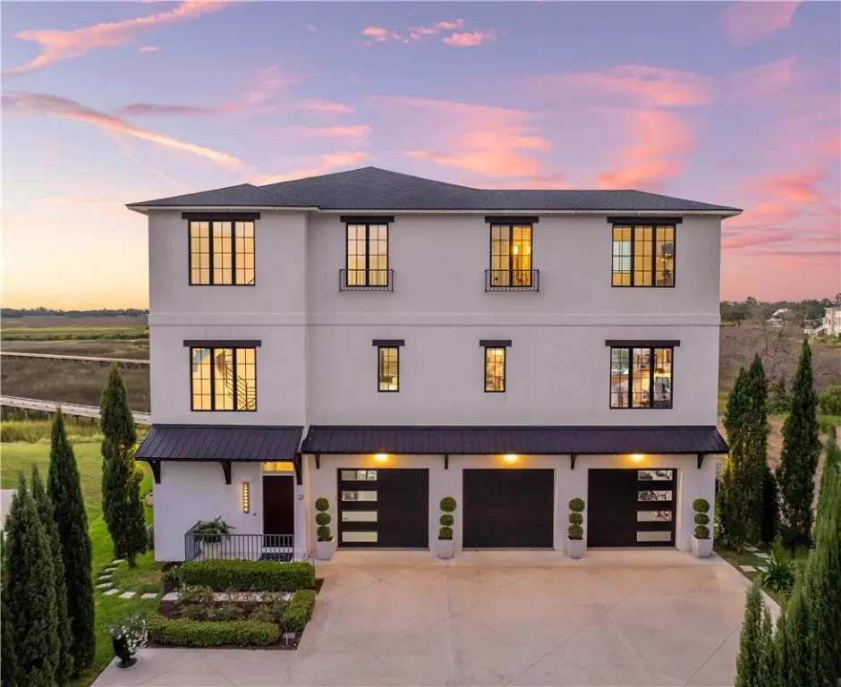 Imagine your very own private resort in a gated mid-island enclave. This striking modern contemporary home showcases eye-catching tile selections, dramatic design elements, and a kitchen worthy of a magazine spread. Everywhere you turn, there’s something to capture your attention—whether it’s the soaring ceilings, walls of glass framing stunning views, or the thoughtful finishes that set this property apart. Spanning over 4,400 sq ft, the open and light-filled layout includes 5 bedrooms and 5 baths, with generous living and entertaining areas inside and out. The chef’s kitchen features high-end appliances, custom cabinetry, and a large island designed for hosting. A wet bar, elevator, and oversized garage with space for up to 5 vehicles add convenience and function. Outdoor living is a true highlight, with a pool, outdoor kitchen, and firepit area. Multiple porches on both levels overlook the surrounding beauty, and boating enthusiasts will appreciate the private dock—shared with only one neighbor—complete with water and electricity. Whether envisioned as a full-time residence or a private vacation retreat, this property delivers the ultimate island lifestyle. For a virtual tour tap the VT icon or visit: https://youtube.com/shorts/Qd0Q1Xlv5fI?feature=share
