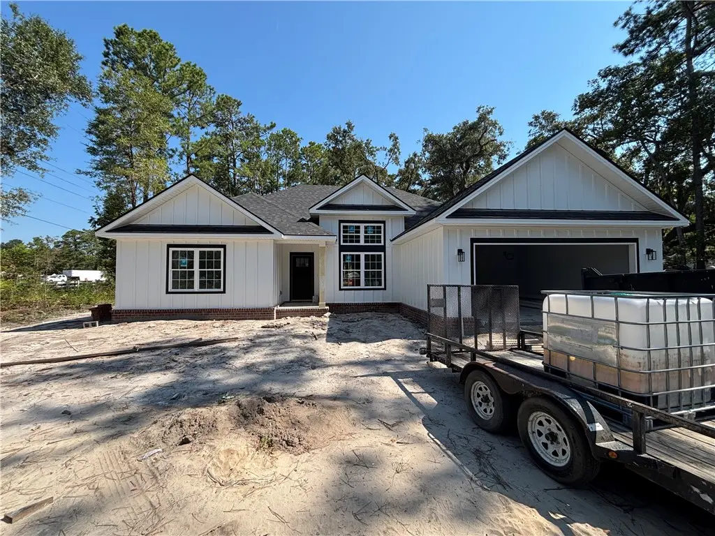 Discover this brand-new construction home with no HOA and located in an X-flood zone for added peace of mind. Offering 1,894 square feet, this thoughtfully designed 4-bedroom, 2.5-bath residence sits on a generous 0.81-acre lot with a stylish Hardiplank and brick exterior. A welcoming foyer leads to the dining and living rooms, all boasting high ceilings and luxury vinyl plank flooring throughout. The living room is highlighted by elegant trayed ceilings, while the split-bedroom floor plan ensures privacy. The kitchen impresses with a large island, pantry, and stainless-steel appliances. The spacious primary suite features a walk-in closet with custom wood shelving, plus an ensuite bath with dual vanities, a separate tiled shower, and a soaking tub. Three additional guest bedrooms, a convenient laundry room, and a powder room complete the interior. Enjoy outdoor living on the back porch overlooking a yard framed by gorgeous trees and take advantage of the two-car garage for ample storage and parking. Estimated completion date October 2025!