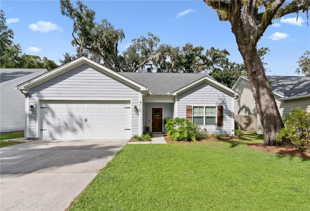 This charming 3BR/2BA cottage offers the ease of one-level living in a prime location close to FLETC, local shopping, dining, and the Brunswick Country Club. The beaches of St. Simons Island are just a 20-minute drive away. Built in 2021, the home features an open-concept design with 9-foot ceilings and luxury vinyl plank flooring throughout. The stylish kitchen is the heart of the home, boasting quartz countertops, stainless steel appliances, a separate pantry and a large center island perfect for gathering. The electric fireplace invites you into the living room, creating the perfect space to cozy up, relax or entertain. The primary suite includes a spacious walk-in closet and a spa-like bath with double vanities and a generous tiled shower. Enjoy outdoor living in the large, fully fenced backyard with a patio ideal for entertaining. A two-car garage completes this well-maintained home, combining modern comfort with everyday convenience.