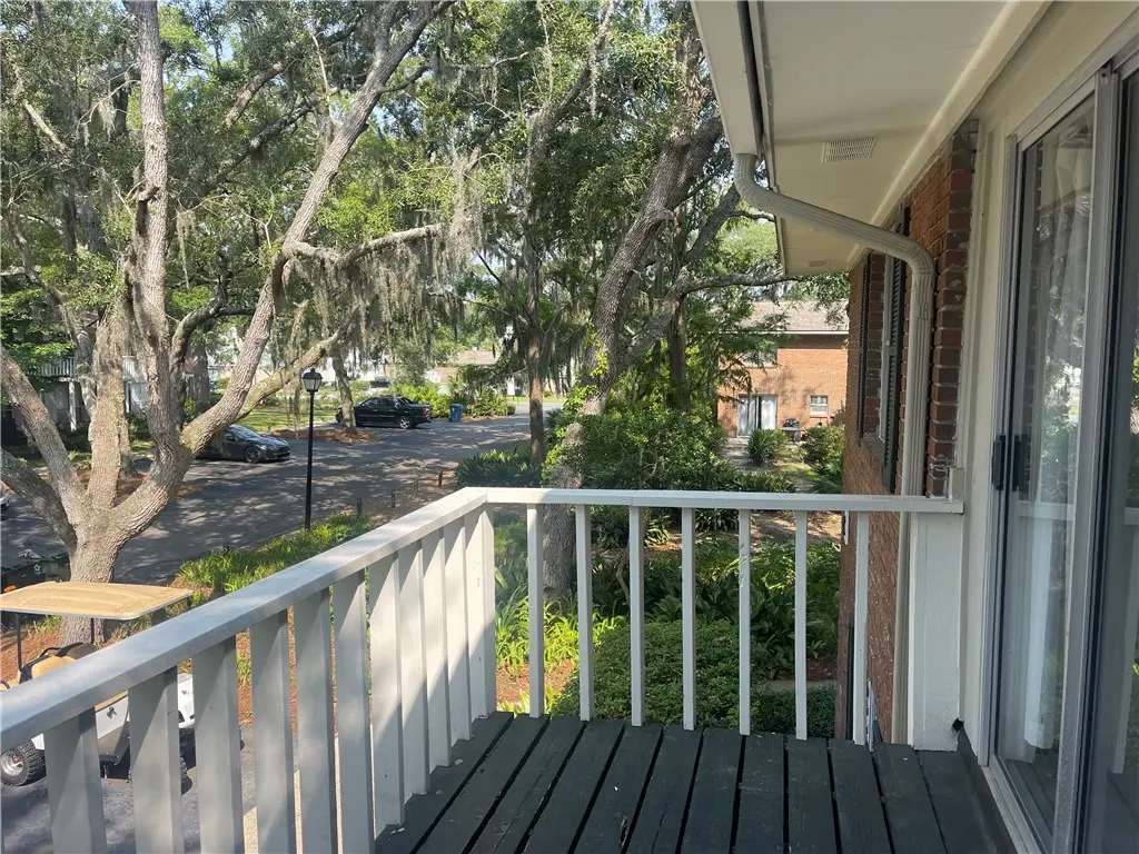 End unit, 2 bedroom, 2 bath condo located on the 2nd floor in Bldg. C in Village Green Condominium Association. This bldg. is across from the laundry room and backs up to the beautiful green space over looking the pool! This property is ready for a full time, 2nd home or an investor. It has a lot of natural light! Vinyl plank flooring throughout, except for the bathrooms. Stackable washer and dryer in the master bedroom closet. Front deck off of the living area. Walking/biking distance to the lighthouse, beach, shops, restaurants and fishing pier in the Village. It is less than 3/4 mile to the Pier. Less than 1/2 mile to the pickle ball courts, tennis courts, dog park and play ground. This community allows owners to have pets and they have a minimum of a 30 day rental. No daily or weekly rentals. Live Oak trees throughout the community. A must see!