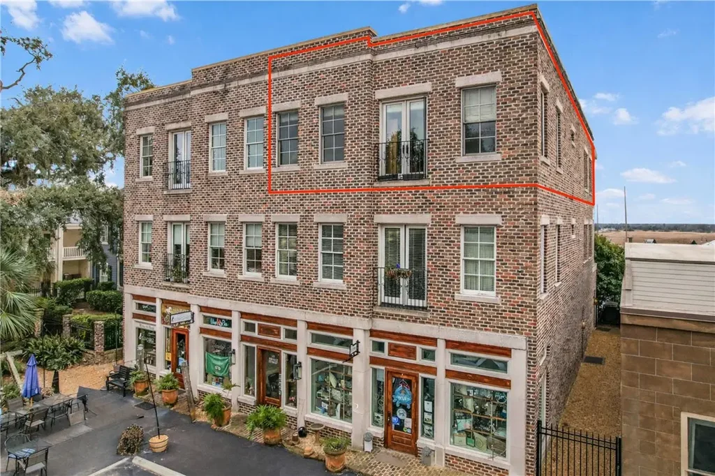 Check out the 3rd-floor views from one of the highest vantage points in Downtown Darien, overlooking the Darien River and historic waterfront. Ideally located on Broad Street, this condo offers easy walking access to restaurants, shopping, public docks, and the boat ramp. Built in 2006 by local builder Bill Bailey, the condo features reclaimed heart pine floors, oversized crown molding throughout, and 10-foot ceilings. The spacious open kitchen with bar is perfect for entertaining and flows seamlessly into the living area. Open the double doors to the screened porch to enjoy coastal breezes year around with stunning sunsets. Generous closet space with built-in shelving adds functionality. Sunroom can be used for dining room or potential office and provides panoramic views. With only four units in the building, all with elevator access, this residence offers privacy and a true small-town feel in the heart of Darien.